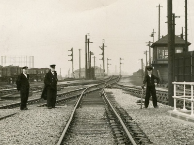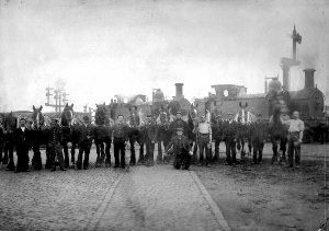 This old picture reminds us of the large number of horses that were needed to do the shunting before the hump was introduced. Once the train engine had departed for the loco shed, the wagons would be chalked with the number of the siding they had to go to. In those days there were 17 and it was horsemen who were responsible for taking them there. |