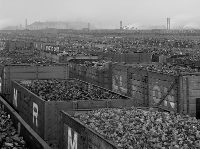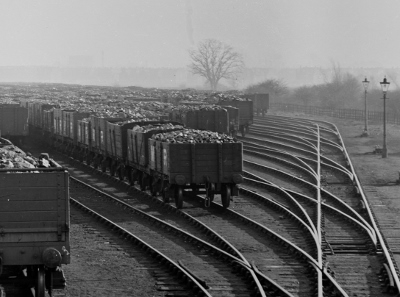 Production of coal from the pits would often exceed demand from customers particularly in the summer months when there was less demand from domestic heating. This picture of the Down Meadow Sidings shows the very large storage capacity of the yards which enabled Toton to accept trains without an immediate recipient. (SSL 9222) |