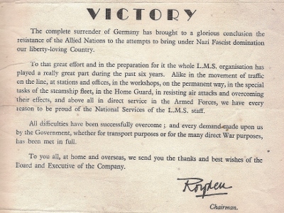 | An early entry to our collection was this fascinating letter sent after WW2 to all the railwaymen who had worked under difficult, demanding circumstances at the yards. They were a target for the enemy! Traffic was very heavy in those years. | Rising through the ranks from cleaner to engine driver was a slow and demanding journey. On route, railwaymen had to pass various examinations in order to be given charge of a steam locomotive. This page is from a personally annotated manual designed to help prepare for the tests. The manual belonged to Reg Townsend and was lent by daughter Kay Bridge. |