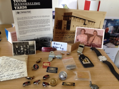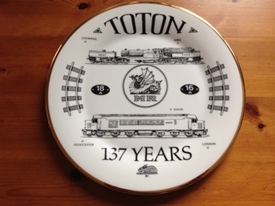 | Barry Ellerby wasn an avid collector of railway memorabilia. After his early death age 53, they were kept by son Ashley who got in touch with us. Barry was part of the diesel shunter team that kept all those wagons moving through Toton in its heyday. | Andy Merriman worked in the offices at Toton for some years and gave talks both at our Launch Day at The Erewash Museum and our Celebration Morning in the Town Hall, Long Eaton. He generously donated various items of which this commemorative plate was just one. |