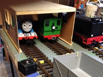 Garage Workshop November 2016 Loco shed in progress. My first attempt at railway modelling, this has proved an attractive feature of our railway. |