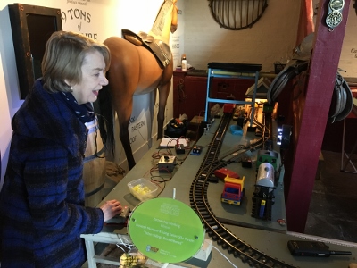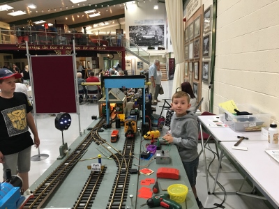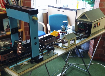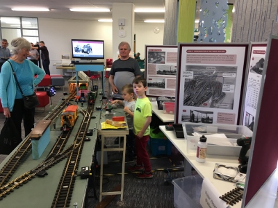 Long Eaton Library October 2017 Back inside, we are at Long Eaton Library for an Open Day to accompany their hosting of our exhibition in Autumn 2017. By now the aim of the railway was to encourage young people to have a go at shunting our wagons over the hump. |