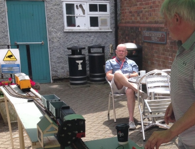 Erewash Museum July 2017 In the courtyard of the Erewash Museum, our early version of hump shunting was on display. It was the first time we worked with ex-Toton driver David Hickton. Sitting in the background is museum stalwart Brian. The occasion was the 2nd Open Day held during our Toton Sidings Exhibition at the museum. |