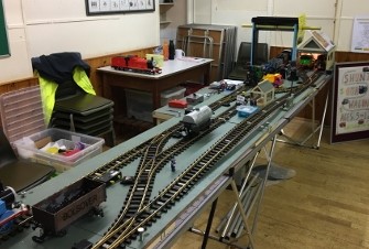 Sherwood Community Centre October 2019 We shared a room with Mike Smith who brought his layout. He is a very active member of the East Midlands G Rail Society and was kind enough to secure us a pitch at this local event. Both layouts were geared towards youngsters so fitted together well. |