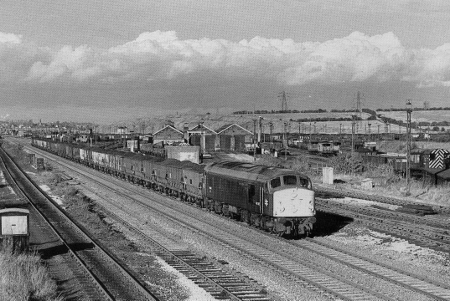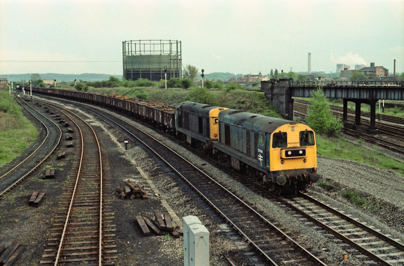 | The other diesel traaction especially associated with Toton were the Class 20s English Electric Freight Locos. They usually worked in pairs unless in charge of local trips eg to Stanton Ironworks. | Some Class 20s were fitted with slow speed control so that they could work the colliery merry-go-round trains. The class lasted into the 1990s. | ||||