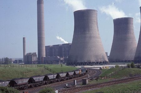 | A Merry-Go Round mineral train entering Radcliffe Power Station. These trains spelt the end of Toton Sidings as a major yard. | A diesel loco D68 alongside a long serving diesel shunter outside the new Toton diesel depot. | ||||