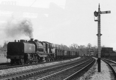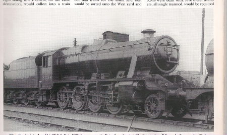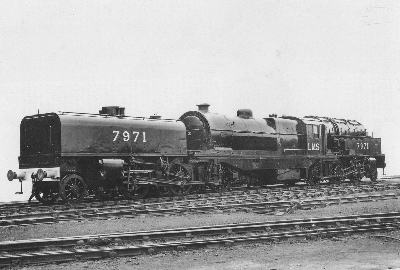 The Midland Railway was famous fot its small engine policy, working on the principle that you could always put two engines on a big train. The long and heavy coal trains from Toton to London would be double-headed. Even after the Midland Railway became part of the London, Midland & Scottish Railway in 1923, there was still a shortage of big powerful freight locomotives. Eventually a big engine was commissioned specially for the Toton-London Brent Yard coal trains. It was developed by the MR locomotive chief Henry Fowler and builders Beyer Peacock. The Beyer Garratt 2-6-0 + 0-6-2 articulated locomotive was the result, introduced from 1927. With one exception, these were the only Garratts to run on British main line railways. (from David Copeland) |