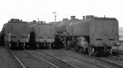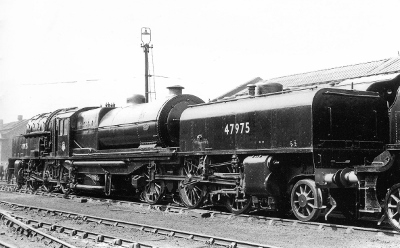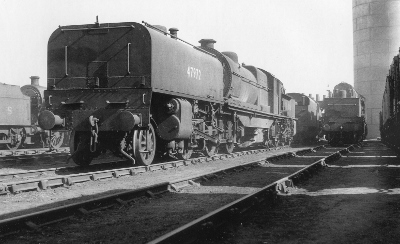 | They were, of course, very heavy on coal and the poor Toton based firemen needed gallons of tea as they sweated their way down to Wellingborough! There are still men living around Long Eaton who remember these demanding shifts. | Facing the camera in this shot of 47972 is the large water tank with a capacity of 3030 gallons. The second water tank located at the other end carried 1470 gallons. Thus a top up could involve two separate fillings! | ||||