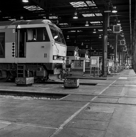Working in the Depot in the 90sThese wonderfully evocative B/W pictures of the Toton Diesel Maintenance Depot were taken in 1993/4 by an amateur photographer called Mick Rhodes. Mick worked at Toton as a fitter having served his apprenticeship at Arnold and SE Derbyshire Colleges in 1979. Mick was encouraged in this photographic project by a graduate engineer working there at the time. The Toton Sidings Remembered project team was delighted to receive these pictures and has covered the cost of printing from negatives for the exhibition. |
