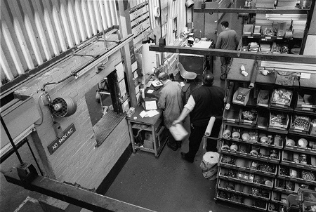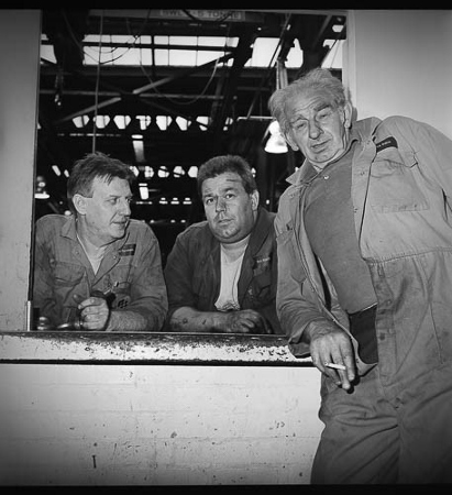 | One of the characters of Toton in the 90s, Pothole Pete(?). Mick writes "Like most heavy industry in the country, there was great canaradery and although there were many disagreements and flare-ups, there was a lovely sense of a 'railway family'. | Some real characters here at the stores hatch. Toton held a very large stock of spare parts. The efficient administration at Toton Depot helped to quickly establish it as one of the leading maintenance centres in the UK. | ||||