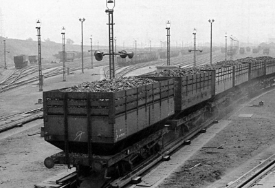 Hump Shunting The Upside (Southbound) before 1939At the pit head, empty wagons were moved (often by gravity) from storage sidings to the screens for loading. The screens were designed to 'sieve' the coal to a particular size and collieries might produce several different sizes of coal from different screens, as required by customers. Once loaded, wagons would then be shunted, probably by gravity, into the loaded wagon sidings and only subsequently would they be labelled to destinations all over the country, wagon by wagon, coal size by coal size. Many coal users scattered around the country ordered coal from a few, specific collieries in quite small quantities. The burning qualities of coal vary greatly depending upon the seam (and the primeval forest!) from which it was taken and customers would not take kindly to the wrong coal being delivered! Every loaded train from the colliery normally had to be shunted and remarshalled at least once between origin and destination. This excerpt is taken from "Toton Yards and the Erewash Valley" produced by David Copeland for the 1998 Toton Open Day. |