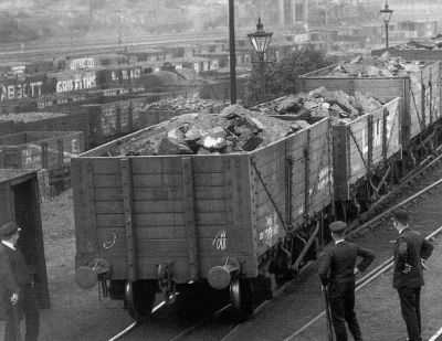 | This picture was taken near the old Stapleford & Sandiacre Station looking towards Long Eaton. It shows the arrival lines for loaded wagons from the collieries. They look rather empty on this occasion! (SSL) | Customers for the coal varied from Town Gasworks to private coal merchants and steam engine depots. Different uses required different sizes and grades of coal. (SSL) |